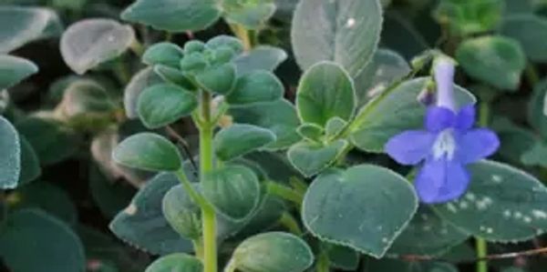 The broadleaf evergreen perennial Streptocarpus saxorum has green leaves. Blue and purple blooms appear in the fall and spring and summer and has a fuzzy feel. It thrives when given regular watering and bright shade and it thrives on soil that is well-drained and ordinary.